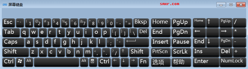 1、开始 → 运行 → 输入“osk”→回车 (出现屏幕键盘)
