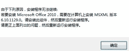 若要安装Microsoft office 2010,需要在计算机上安装MSXML版本6.10.1129.0.请安装此组件,然后重新运行安装程序。请更正上面列出的问题然后重新运行安装程序。